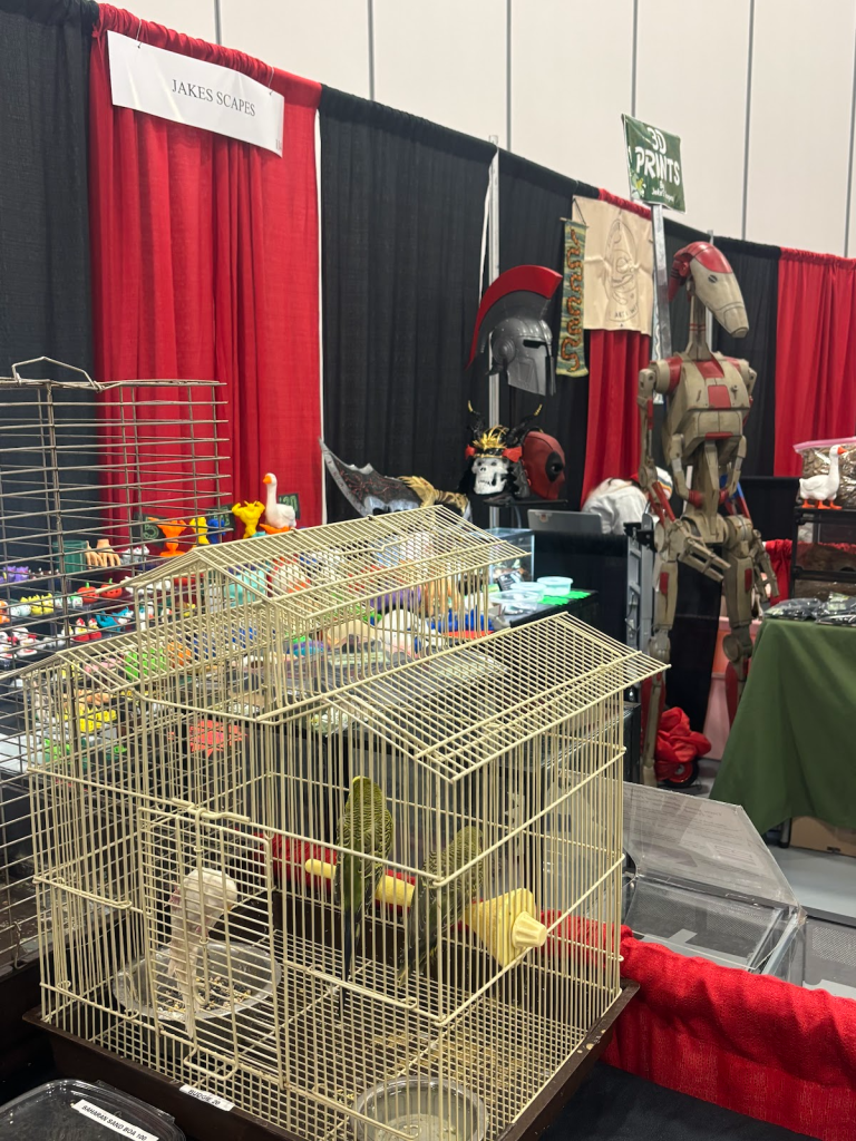 One aspect of the expo that, while present during my first visit, had grown significantly in the intervening years was the prevalence of booths and items with little to no relation to the reptile theme. While live animals and animal-care related booths still took up most of the space, there were numerous booths selling homemade arts and crafts, minerals and gemstones, and action figures and other memorabilia that were primarily targeted towards “nerd culture.” The visual that most emphasized this juxtaposition for me was a booth selling parrots directly next to a vendor who was selling a to-scale model of a Star Wars B1 battle droid.