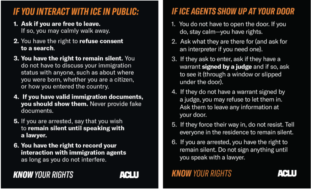Legal advocates also emphasize that the important thing people can do to prepare is to know their constitutionally protected rights. Here are the basics from the American Civil Liberties Union (ACLU), all of which apply to citizens and non-citizens residing in the U.S. alike:
