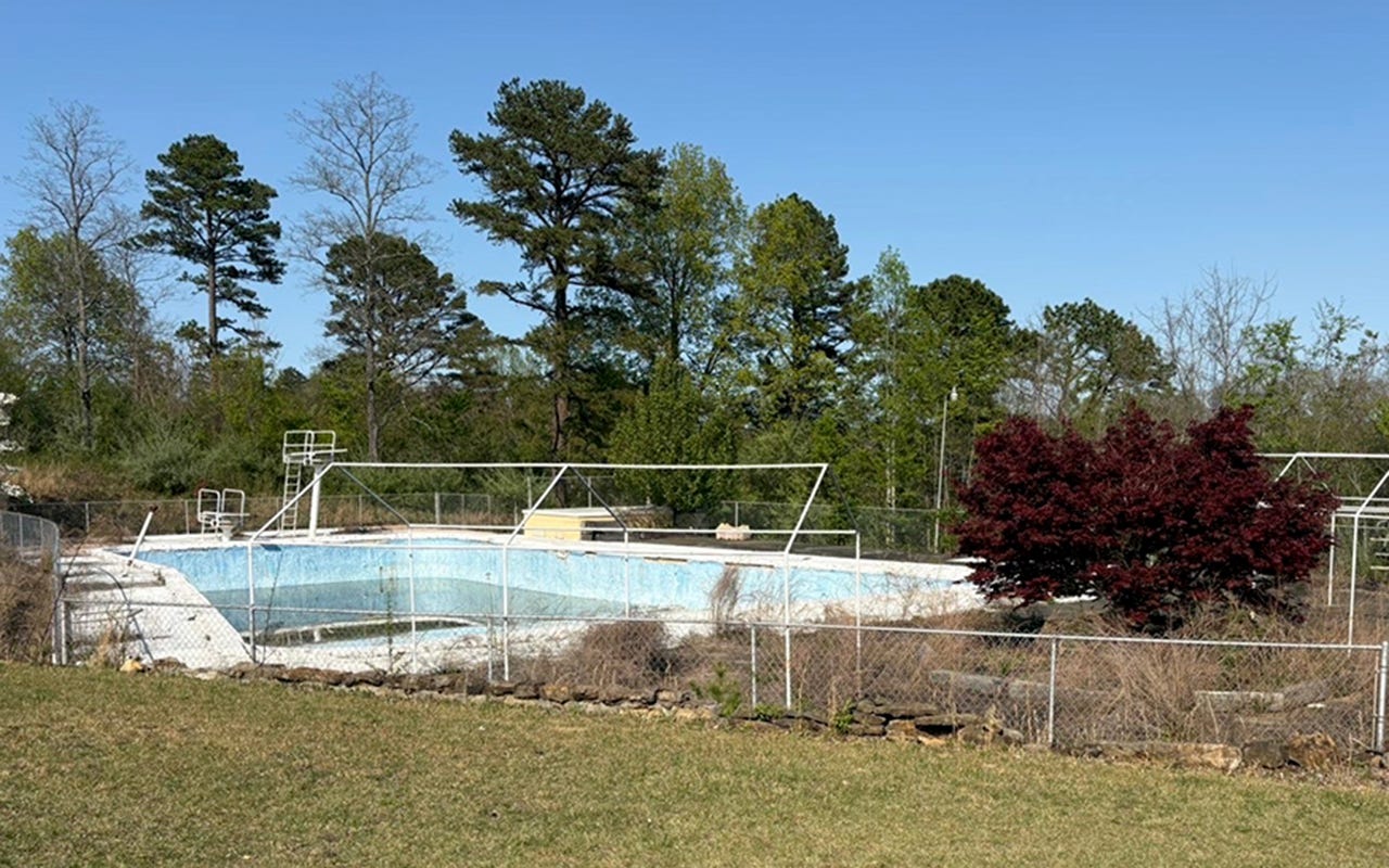 As backwards as this clubhouse sounds, it is still a country club. Next to the hangar is a bleached concrete pool deck. The pool is fitted with a diving board and high dive, one of the only in the county. By all accounts, the pool was cutting-edge summer leisure during the Reagan Administration. However, modern-day guests will find the same pool with a vacant shallow end that slants into a deep end. Accumulating at the bottom is biodiverse, stagnant, lime-green sludge. If you jump off the high dive today and the fall doesn’t kill you, the brain-eating amoebas will.