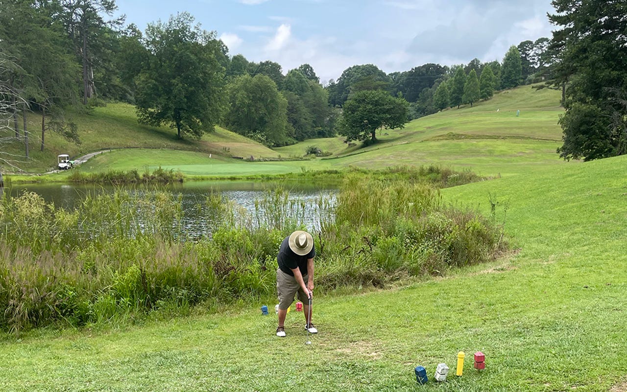 The night before we played, I dragged my dad’s dusty golf bag from our basement. He bought them sometime in the ’90s and hadn’t played a round with them since ’05. It was a sticky summer morning when our crew rolled into The Golf Course, and for the next four hours, we wacked, chunked, sliced, and laughed. When we weren’t golfing, my buddies and I took turns racing the vintage club cars around the pond on dusty, rocky, dirt roads—a rutted-out race track surrounded by three-foot weeds. Looking back, I’m thankful Butch-Anne never had to fish one of us out.